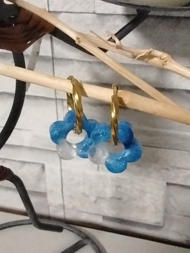 (1) une paire de créoles 18 mm torsadé doré + une paire de pampilles fleur et paillette.