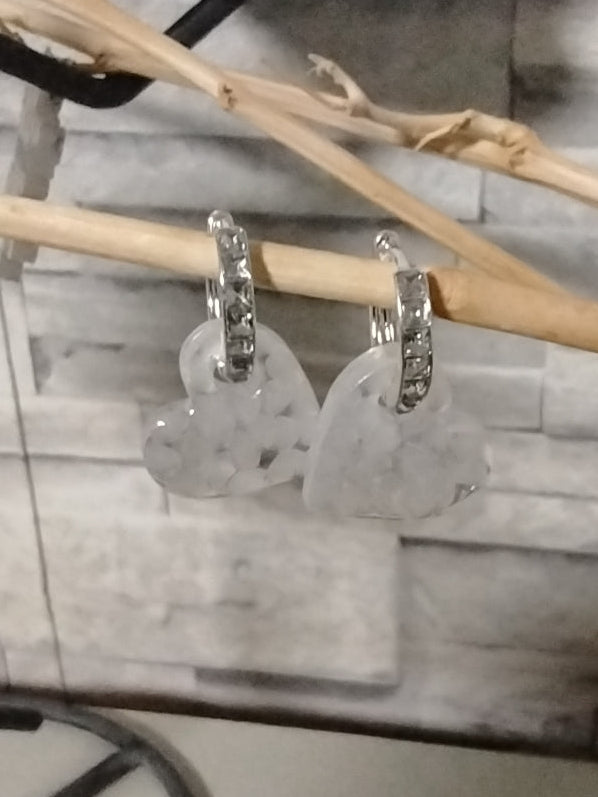 (10) Une paire de créoles 12mm torsadé argenté + une paire de pampilles cœur blanc.
